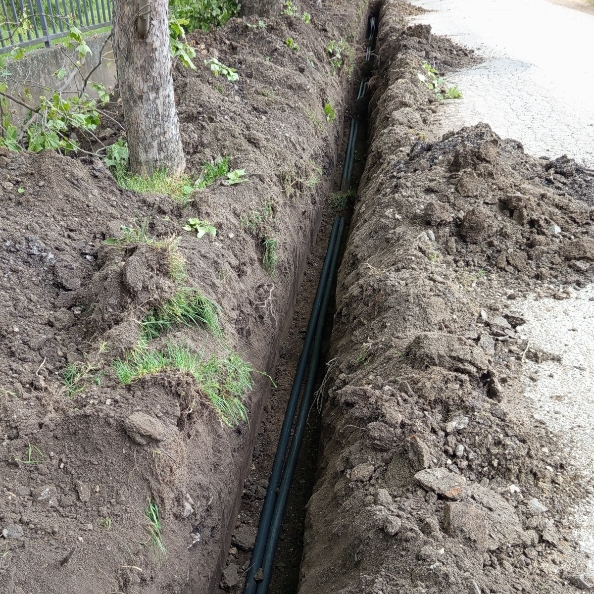 Alépítményes hálózat építés, védőcsövek fektetése, és kábelek behúzása, kapcsolódó földmunkák.